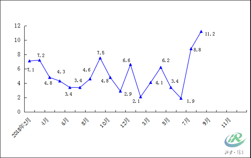 2019年1-8月一般公共预算收入累计增速(%)