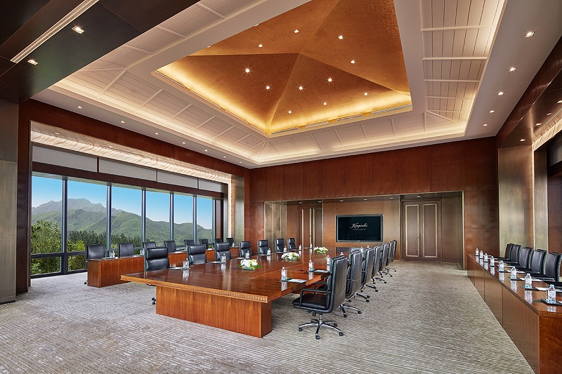 鸿雁厅面积达960平米,高6米,端庄大气、不失严谨;可灵活分隔成2至3个独立空间。通过智能控制系统,可实现新闻发布、大型会议、接待及宴会等多种不同场景照明模式。