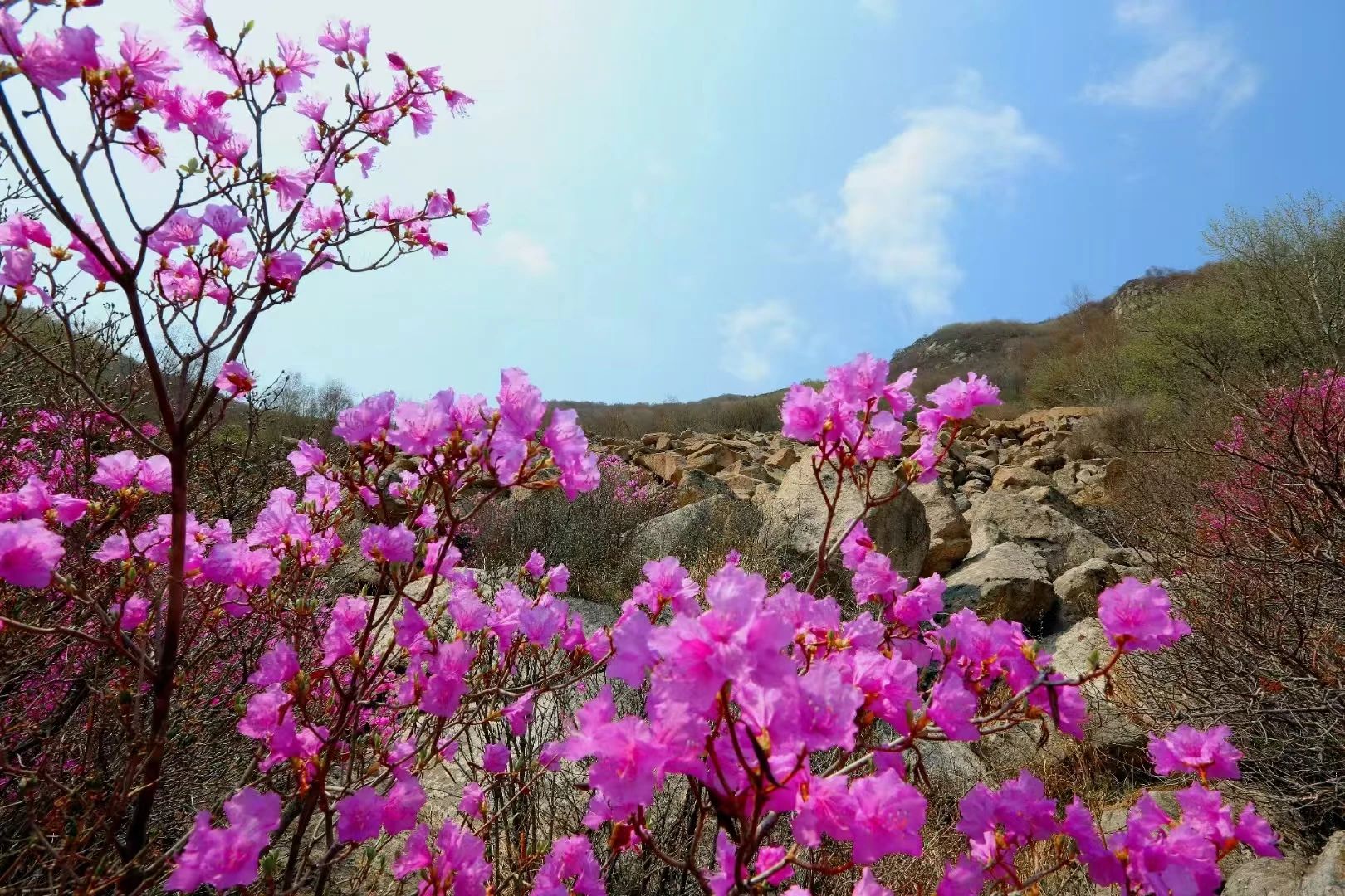 位于长哨营满族乡的南山观景台是一处人少景美的春日秘境。拾级而上,登临观景平台,远眺群山如黛,层峦叠翠,顿生“一览众山小”的壮阔情怀。偶有飞鸟掠过山间,为这幅春色增添灵动,时光仿佛在此刻慢下脚步。欣赏完“一览众山小”的美景,驱车40多分钟就可到达北京喇叭沟原始森林公园。这个季节漫山遍野的杜鹃花竞相开放。每年的4月底到5月中下旬,公园繁花似火,大面积的野生杜鹃花美艳动人。