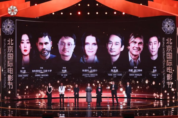 开幕式现场,本届“天坛奖”国际评奖委员会主席、法国演员朱丽叶·比诺什,携评委会全体成员——中国导演毕赣、法籍越南裔导演陈英雄、巴西导演加布里埃尔·马斯卡罗、英国作曲家西蒙·弗兰格伦、中国演员张小斐、中国演员张译集体登台。比诺什动情回忆多年前中法合拍的第一部电影,该片讲述了一对兄妹因为一只风筝来到北京,与他们的中国朋友相遇在天坛的故事。“我心中的天坛,始终如此,它是友谊的象征,是唯有电影才能编织的传奇。”