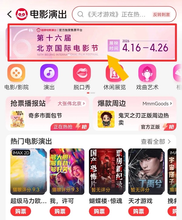 打开带有「第十六届北京国际电影节」唯一标识的订单详情