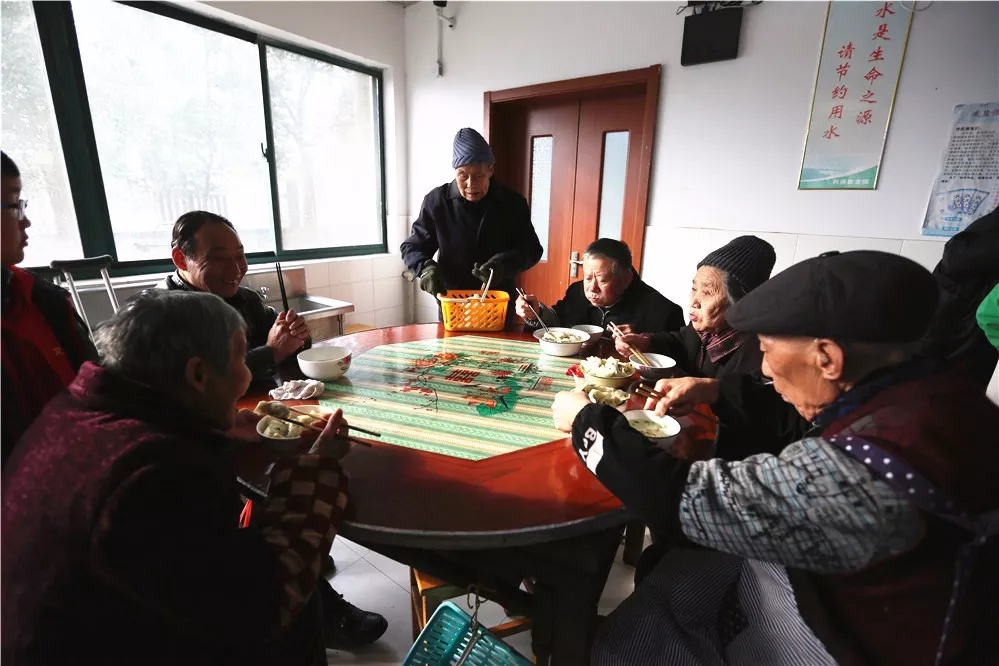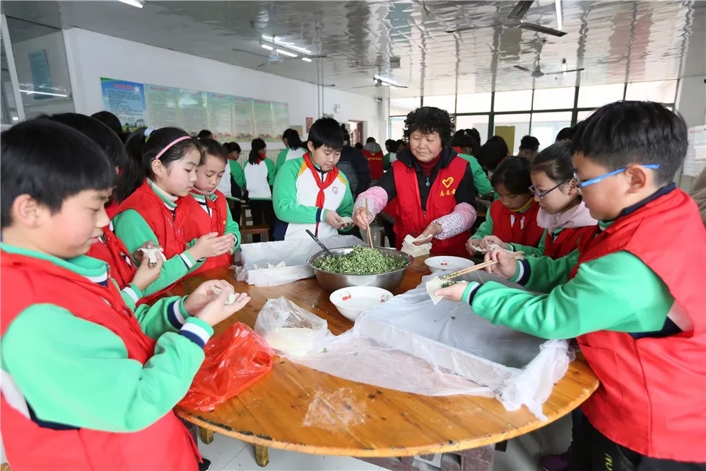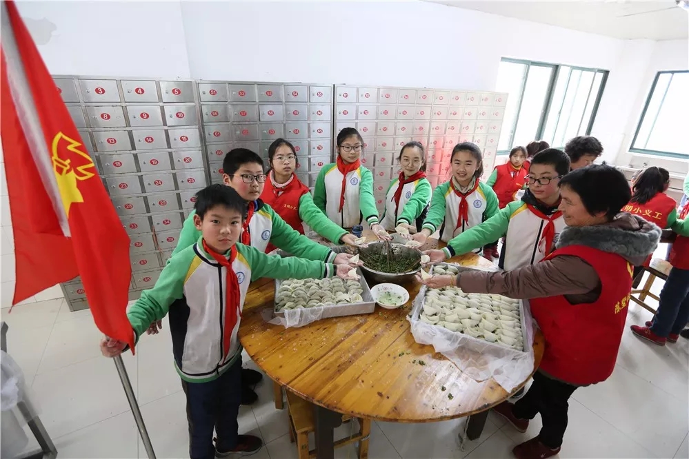 下午,利港实验小学少先队员与陈墅社区巾帼志愿者徒步来到敬老院。队员和志愿者们把准备好的馄饨馅拿出来,递筷、拿碗、铺桌布,大家边聊天边忙活,整个敬老院内笑声不断,其乐融融。