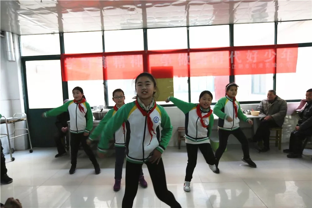 包好馄饨,队员们为敬老院的老人们带来了精彩的表演。演出由姚子涵和缪子轩主持,节目丰富多彩,有爷爷奶奶们喜欢的锡剧,有激情飞扬的舞蹈,有优美动听的歌曲,爷爷奶奶们乐得纷纷鼓掌称赞。孙老师被在场的情绪感染,也即兴献歌一曲,祝老人们健康长寿。