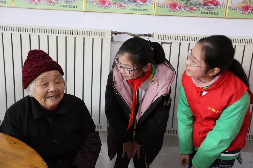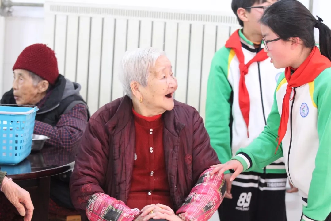 活动中,队员们主动搀扶腿脚不便的爷爷奶奶,得到阵阵夸赞。老人最需要的心灵抚慰,敬老院老人很多心里话无处倾诉。杨琴、王欣妍主动与老人聊天,倾听老人的心声;宋紫冉和戴楠航给老人捶背,老人笑声连连,脸上乐开了花。