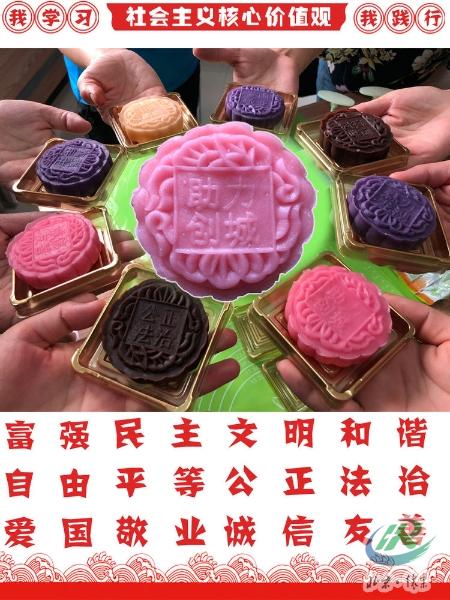 为了给我区创建全国文明城区助力,大力弘扬社会主义核心价值观。社区还为居民们定制了印有“社会主义核心价值观”24字的月饼模具。这样居民在学习制作月饼的欢乐气氛中还可以学习知识。