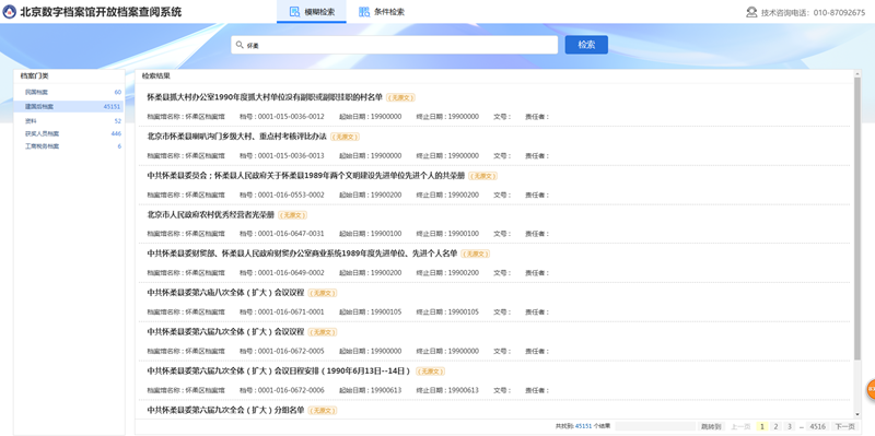 北京数字档案馆开放档案查询系统已正式上线,社会公众可通过“北京档案信息网”直接进入该系统,对北京市档案馆及16个区档案馆的开放档案目录进行“一站式”检索。查到所需目录后,可前往相关档案馆依规查阅原文。系统提供模糊、单库、跨库等多种检索方式,操作简便,免费使用。