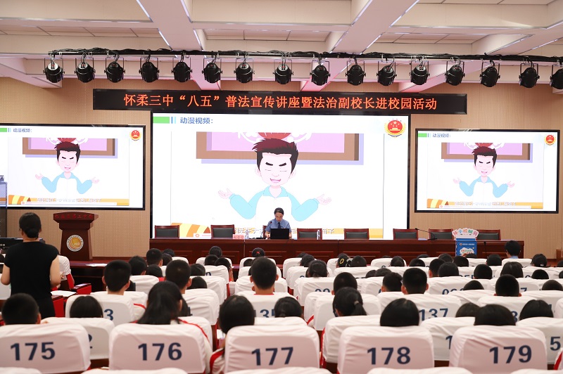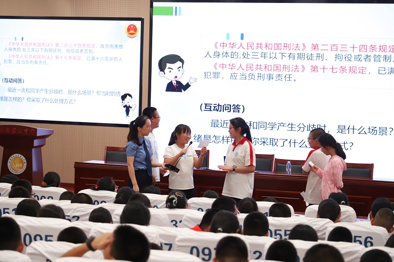 9月8日,调研组首站抵达怀柔三中,现场观摩法治副校长赵莹雪的法治专题讲座。讲座紧密结合真实案例,聚焦青少年高发法律风险,引导学生树立“勿以恶小而为之”的法治观念。课堂互动积极,学生在问答思辨中切实感受到法律的威严与公正,进一步增强了依法自我保护的意识和能力。