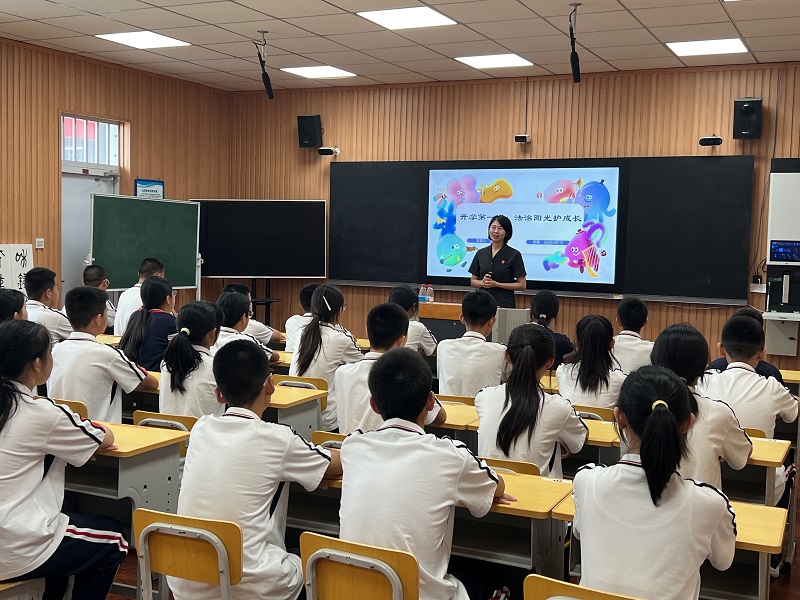9月12日,调研组来到怀柔五中,聆听法治副校长王芳主讲的“开学法治第一课”。课程系统涵盖法律基础、宪法法律权威及未成年人保护等重点内容,结构清晰、覆盖全面。王法官借助“六大保护”体系解析《中华人民共和国未成年人保护法》,并穿插互动游戏环节。12道贴近学生日常生活的法律选择题引发强烈共鸣,让学生在轻松氛围中实现知识内化与素养提升。