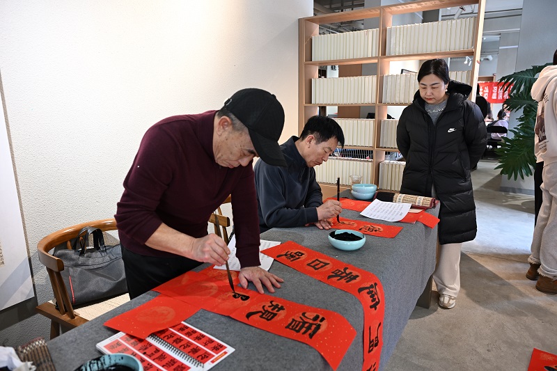 与此同时,“翰墨书法治春联”区域墨香四溢。四位书法老师挥毫泼墨,笔走龙蛇。“法治春风拂大地 精神财富焕中华”“骏马奔腾开盛景 法治护航谱新篇”……一副副寓意吉祥的法治春联、一张张饱含美好祝愿的福字跃然纸上,既有对新春的美好祝福,也蕴含了对尊法学法守法用法的倡导。居民们或围观欣赏,或有序排队领取心仪的春联,喜悦之情溢于言表。