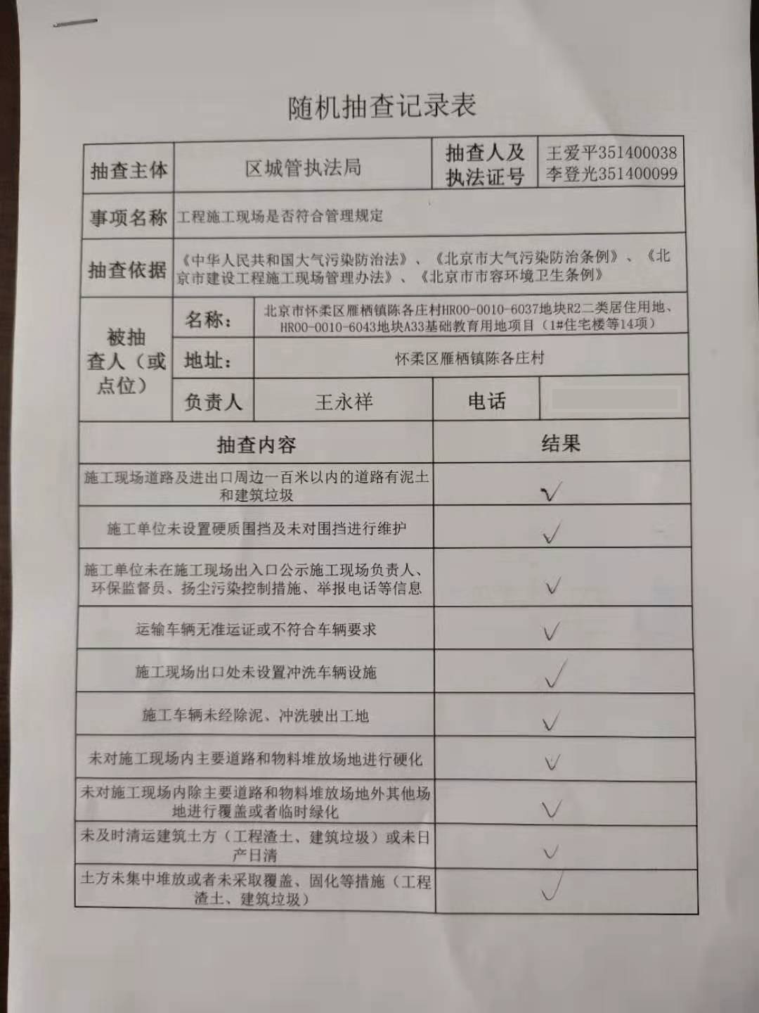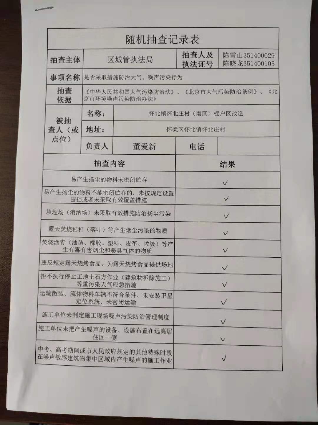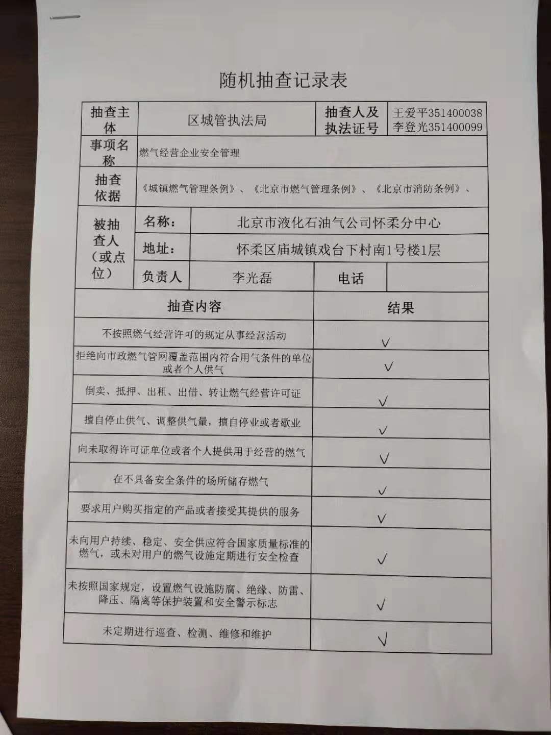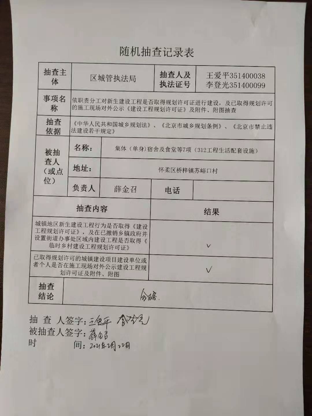 北京市怀柔区城市管理综合行政执法局双随机检查抽查结果2021年2月