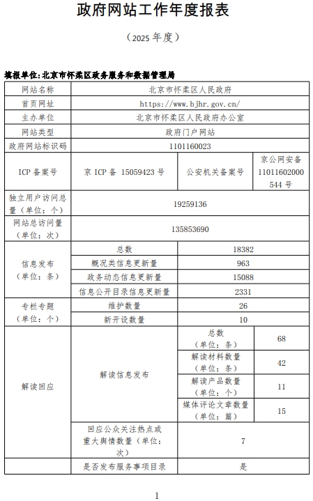北京市怀柔区人民政府门户网站2025年度政府网站工作年度报表