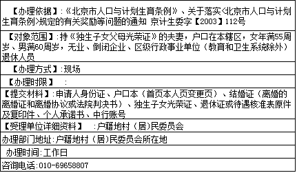 办理独生子女父母年老时一次性奖励费