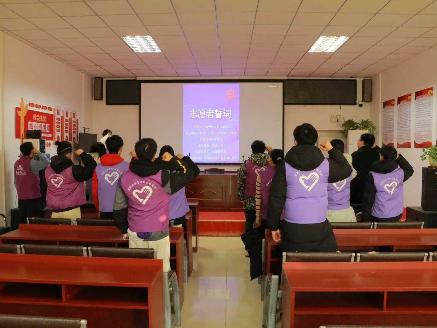 宣誓明志凝共识,青春担当促发展。在庙城村新时代文明实践活动室,镇团委组织全体志愿者举行庄严的宣誓仪式。“我志愿成为光荣的志愿者,践行奉献、友爱、互助、进步的志愿精神,响应党和国家号召……” 铿锵有力的誓言在广场回荡,既是志愿者们的郑重承诺,也是庙城镇深化新时代文明实践、厚植志愿文化的缩影。通过主动对接高校资源,不仅切实解决了基层服务需求,更推动了校园志愿力量与地方发展需求的精准对接。