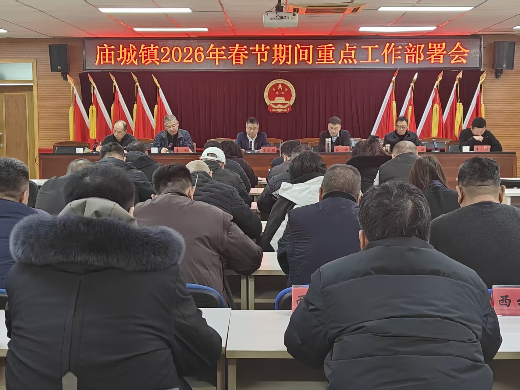 为切实保障春节期间全镇各项工作平稳有序开展,让广大群众度过一个安全、整洁、文明、祥和的新春佳节,2月11日,庙城镇召开春节期间重点工作部署会,专题研究部署节日期间全镇重点工作任务。镇二级班子成员、20个村(居)书记参加会议。